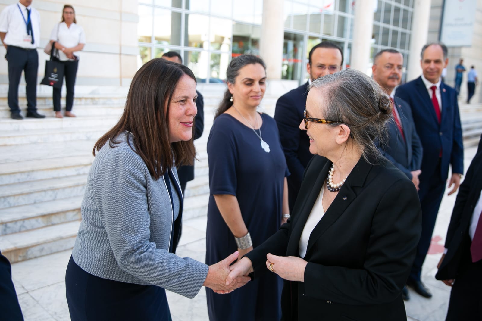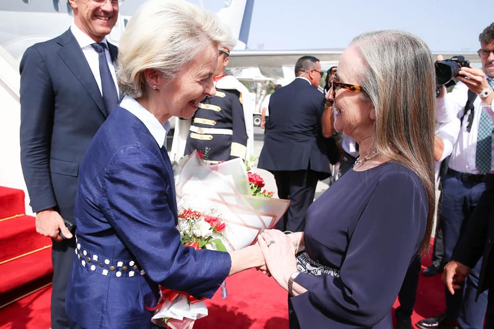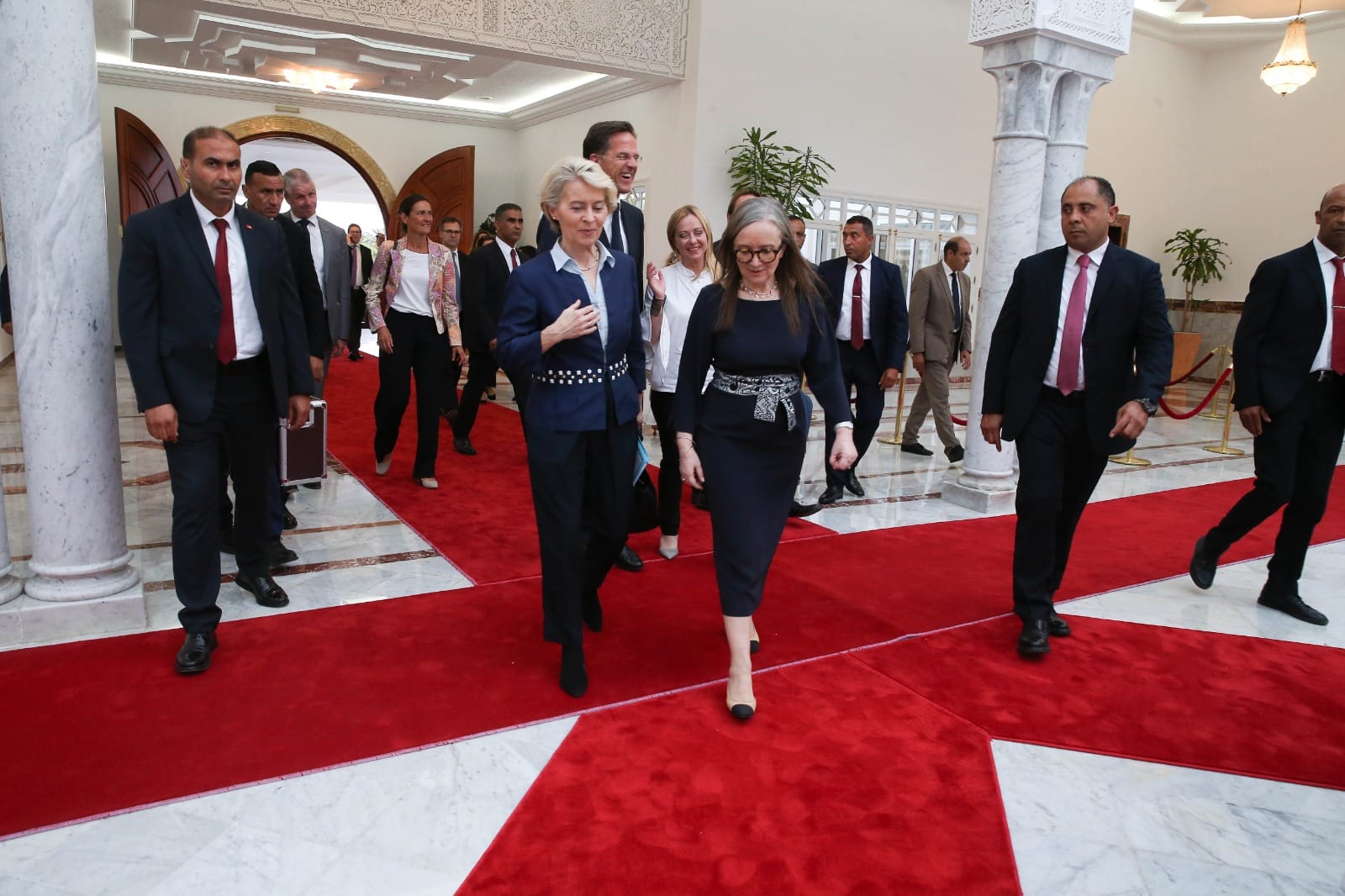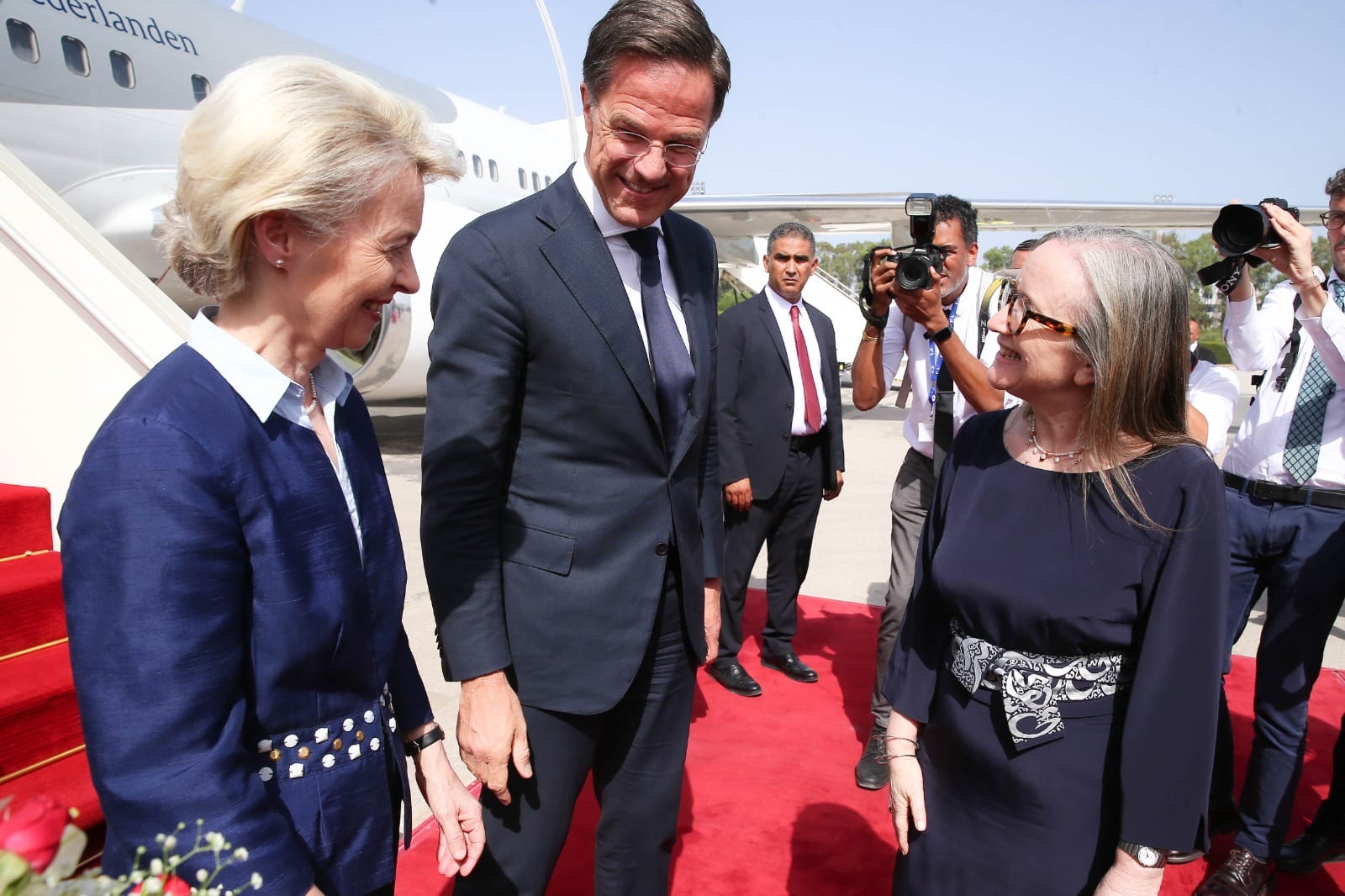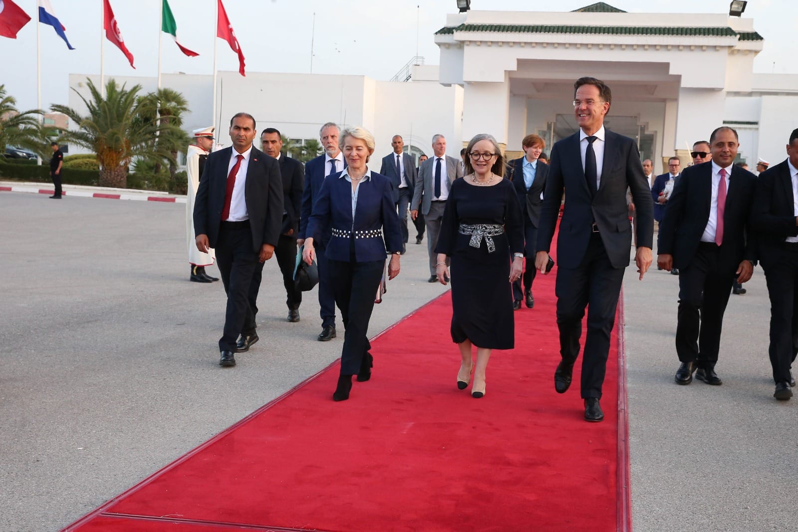 رئيسة الحكومة السيدة نجلاء بودن رمضان تستقبل ظهر اليوم الأحد بالجناح الرئاسي بمطار تونس قرطاج الدولي، كل من ورئيسة المفوضية الأوروبية السيدة أورسولا فون دير لاين، والوزير الأول الهولندي السيد مارك روته والسيّدة جورجيا ميلوني رئيسة مجلس الوزراء بالجمهورية
