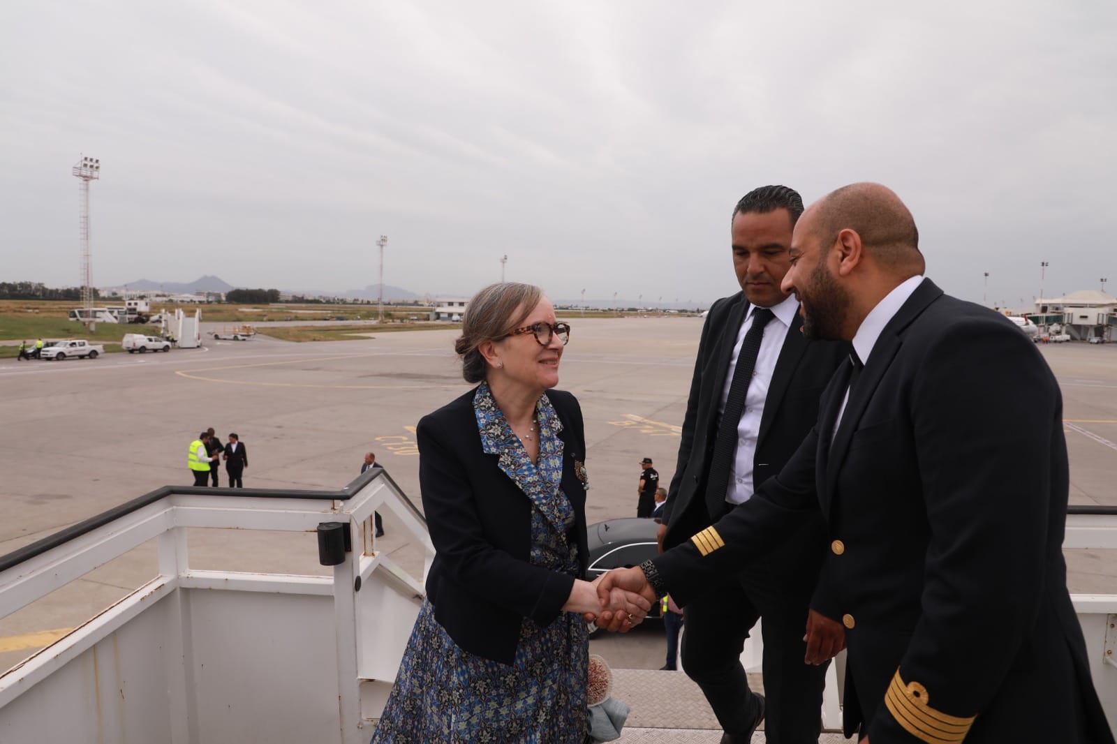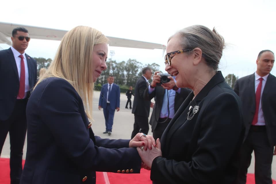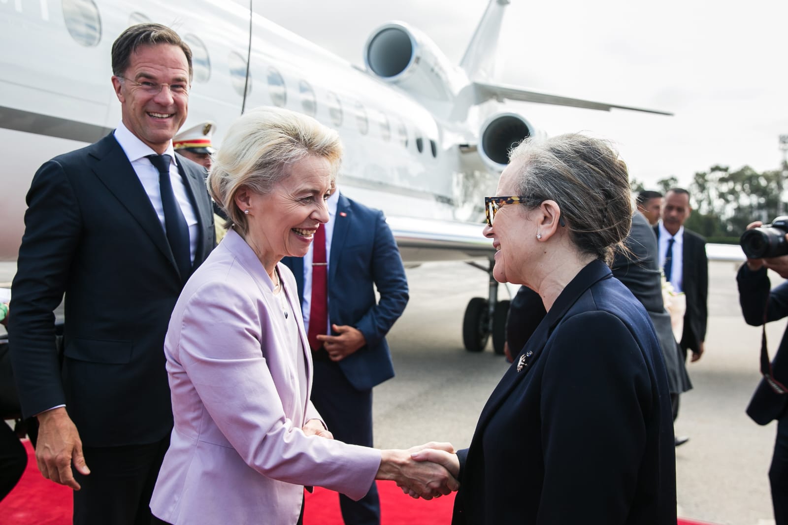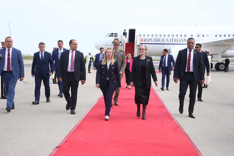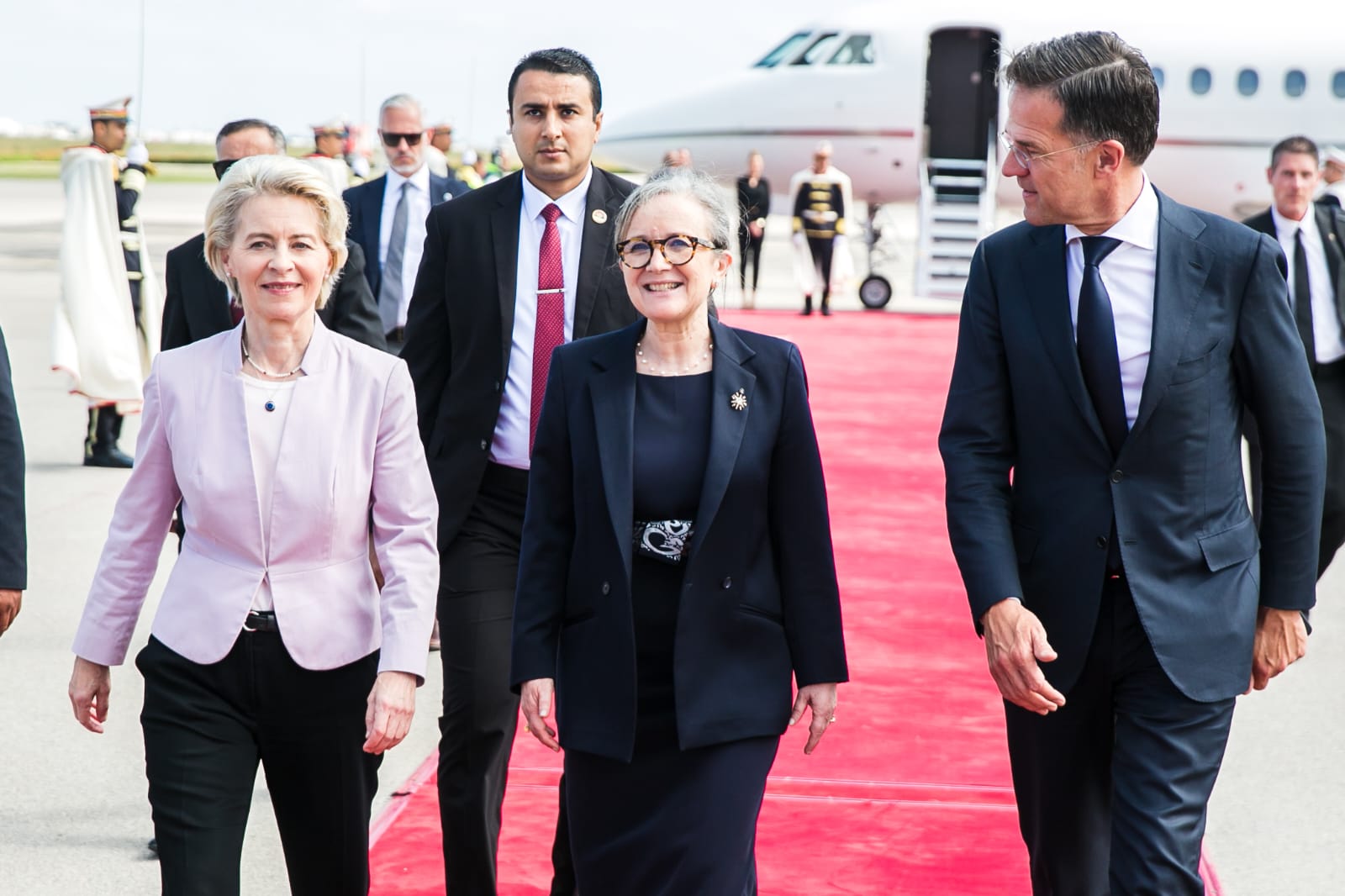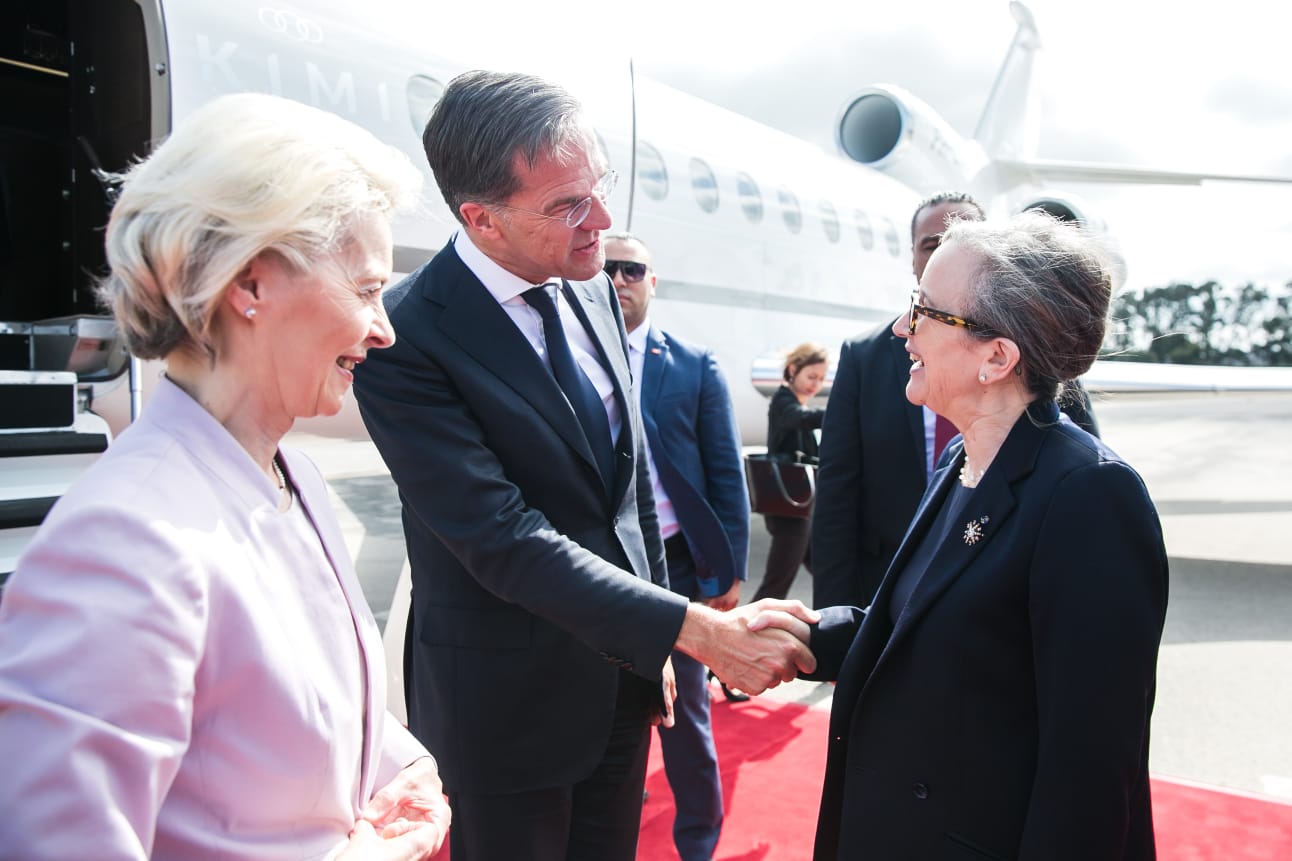رئيسة الحكومة السيدة نجلاء بودن رمضان تستقبل اليوم الأحد بالجناح الرئاسي بمطار تونس قرطاج الدولي، كل من رئيسة المفوضية الأوروبية السيدة أورسولا فون دير لاين، والوزير الأول الهولندي السيد مارك روته، والسيّدة جورجيا ميلوني رئيسة مجلس الوزراء بالجمهورية