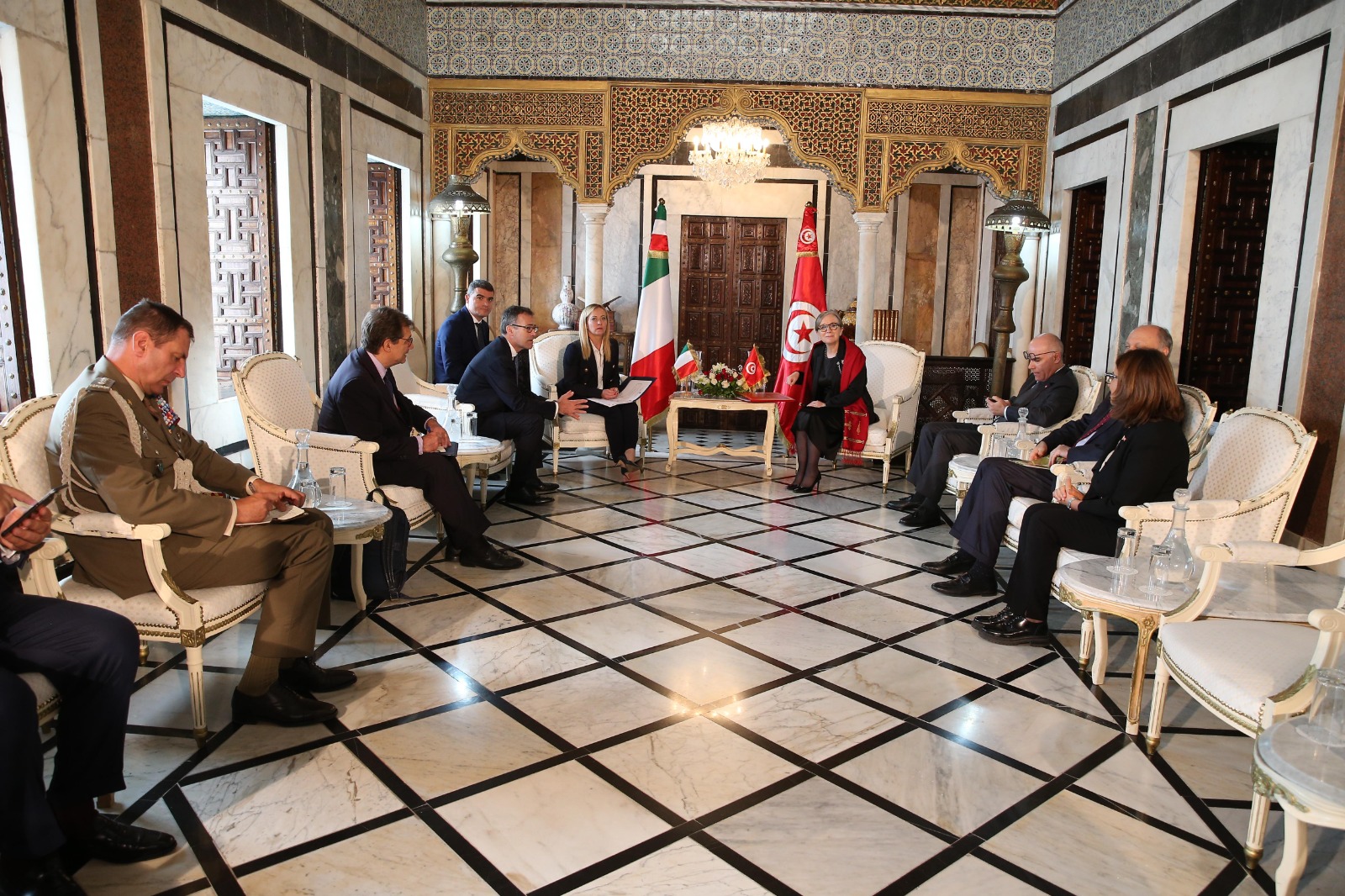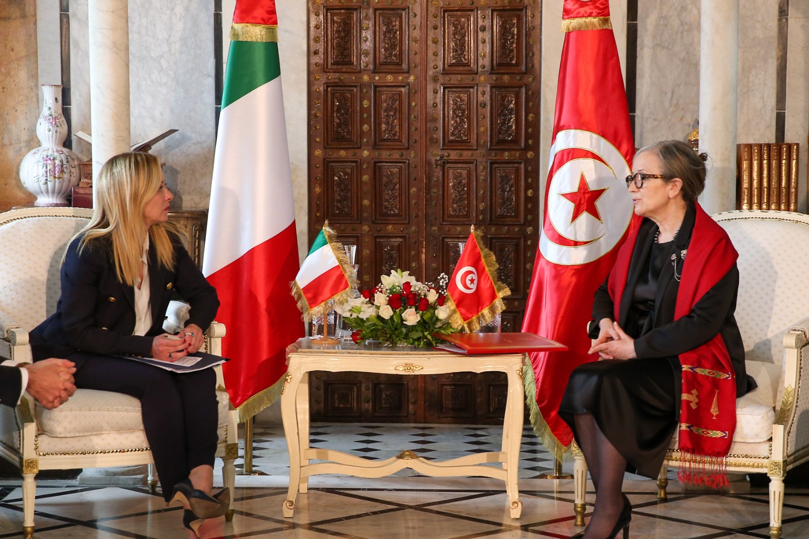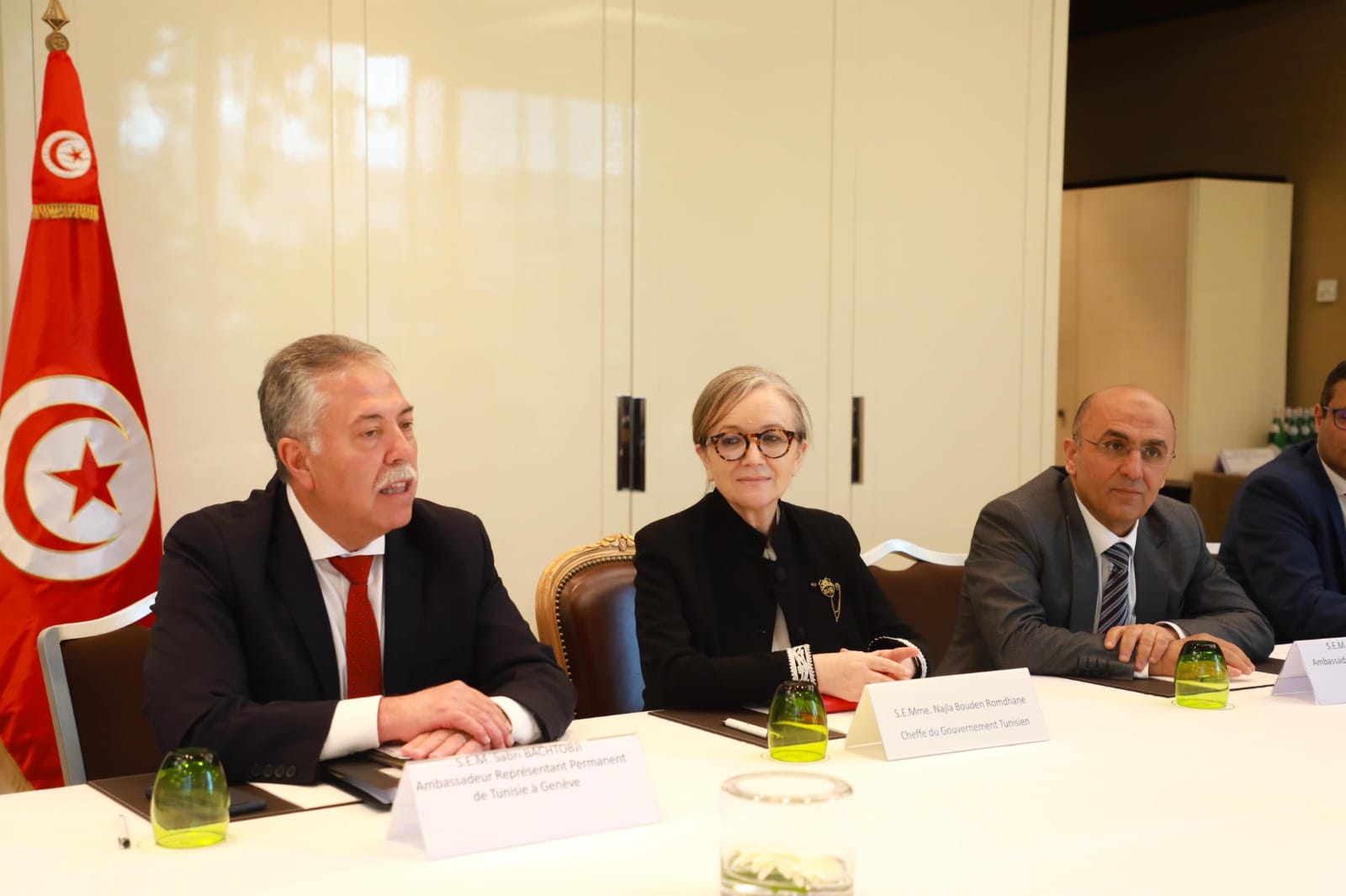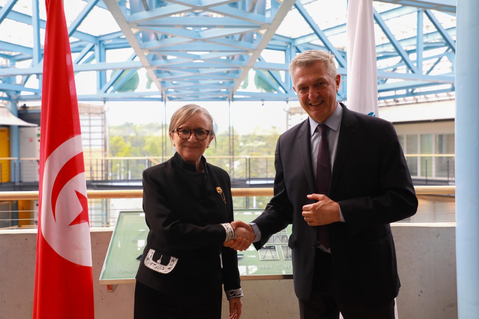 رئيسة الحكومة السيدة نجلاء بودن رمضان تستقبل اليوم الأحد بالجناح الرئاسي بمطار تونس قرطاج الدولي، كل من رئيسة المفوضية الأوروبية السيدة أورسولا فون دير لاين، والوزير الأول الهولندي السيد مارك روته، والسيّدة جورجيا ميلوني رئيسة مجلس الوزراء بالجمهورية