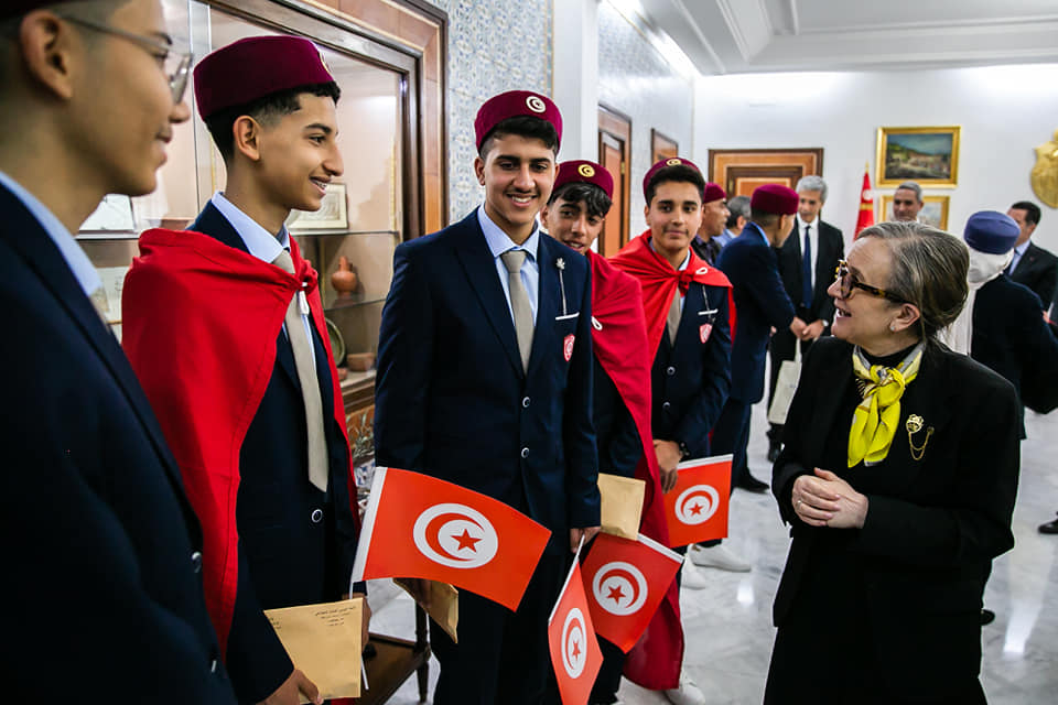 رئيسة الحكومة، السيدة نجلاء بودن رمضان، توّدع وفد نادي الذكاء الاصطناعي "أبطال حفوز"