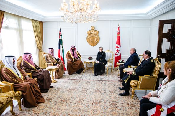 رئيسة الحكومة السيدة نجلاء بودن رمضان توّدع اليوم الاربعاء، بالجناح الرئاسي لمطار تونس قرطاج الدولي، النائب الاول لرئيس مجلس الوزراء الكويتي ووزير الداخلية ووزير الدفاع بالانابة الشيخ طلال خالد الاحمد الصباح، والوفد المرافق له.