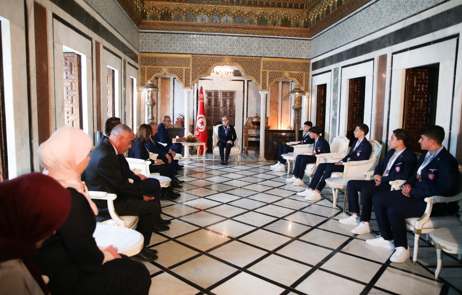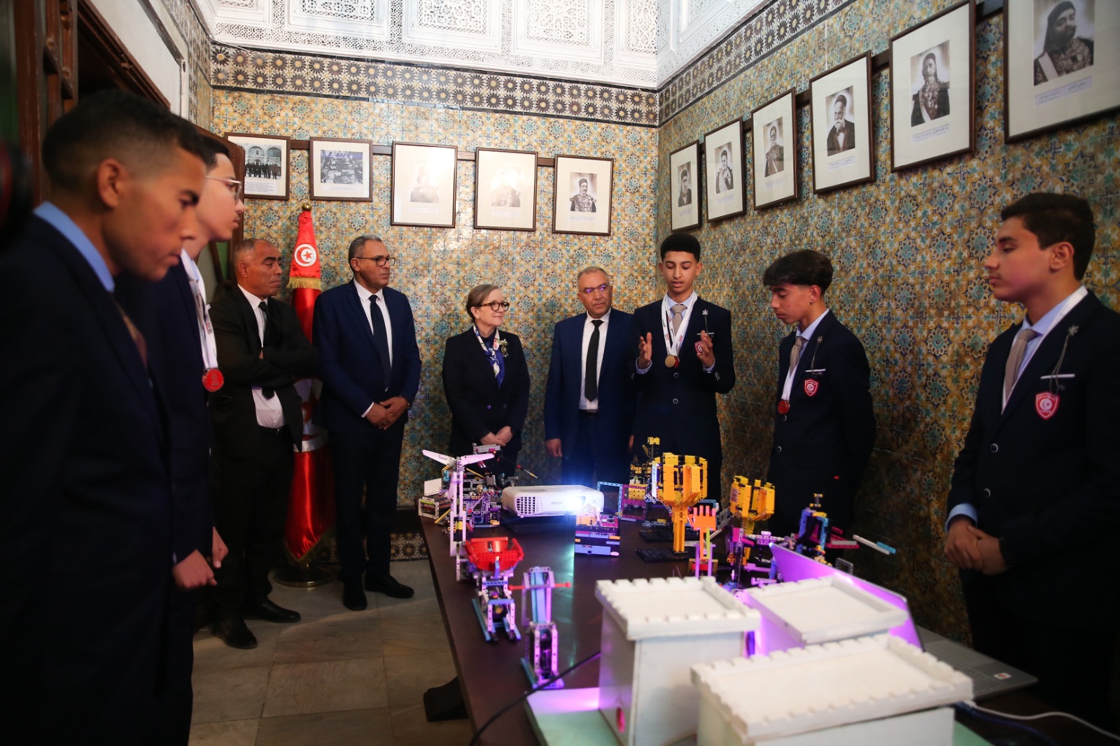 رئيسة الحكومة السيدة نجلاء بودن رمضان تستقبل الفريق الذي سيمثل تونس في البطولة العالمية لروبوتيك