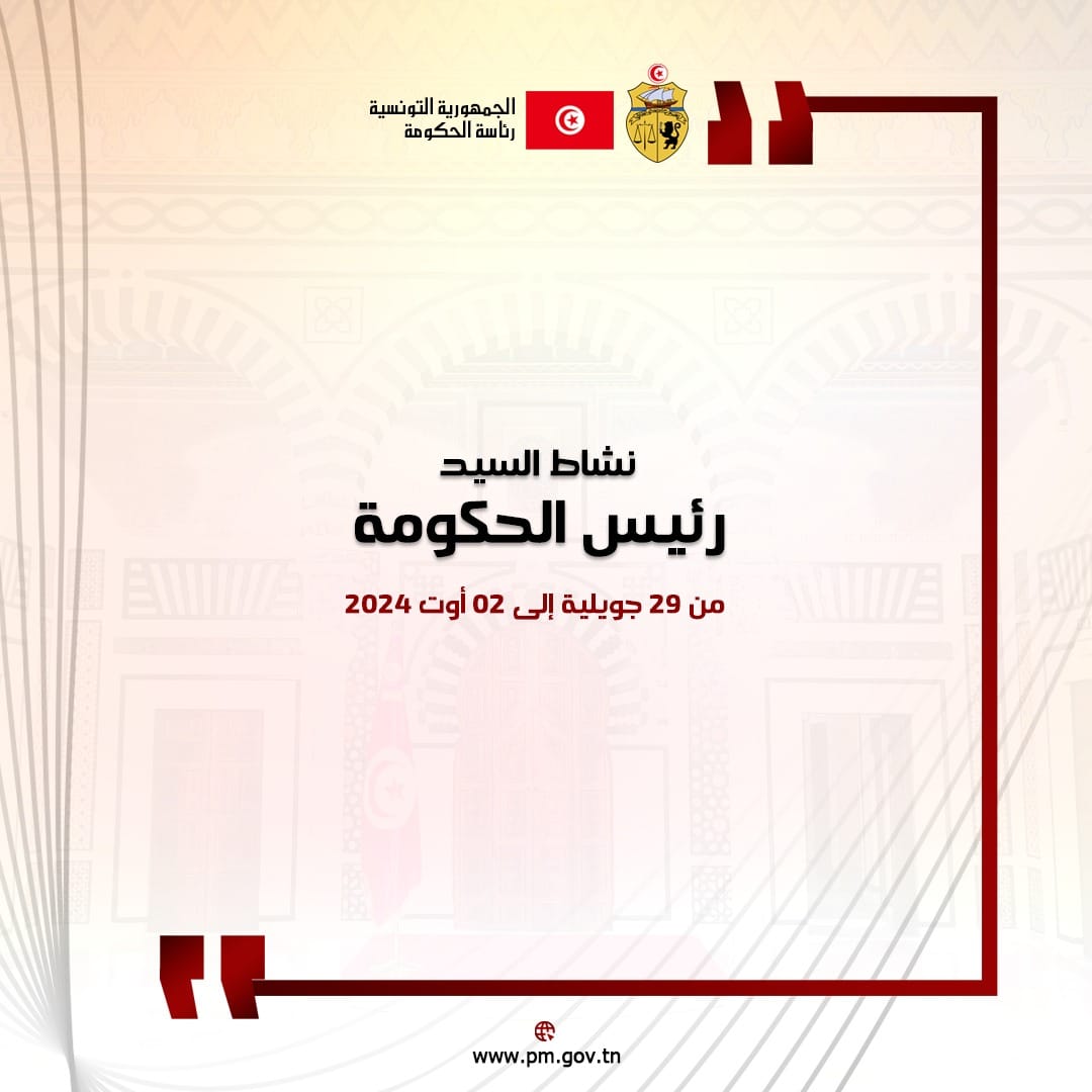 نشاط السيد رئيس الحكومة من 29 جويلية إلى 02 أوت 2024