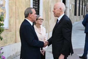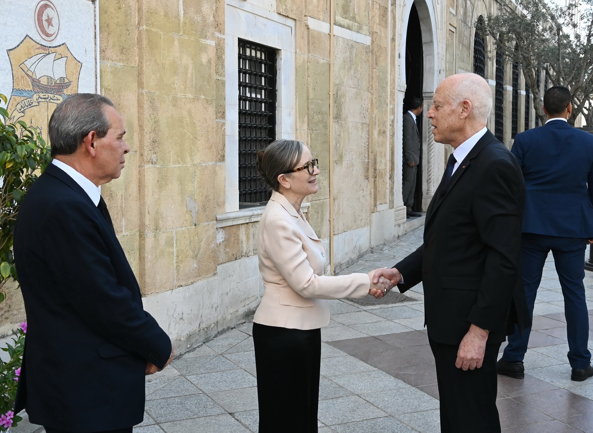 La supervision du président de la République, Kaïs Saïed, ce mercredi 2 août 2023, lors de la cérémonie de passation des fonctions à M. Ahmed Al-Hashani en tant que Premier ministre.